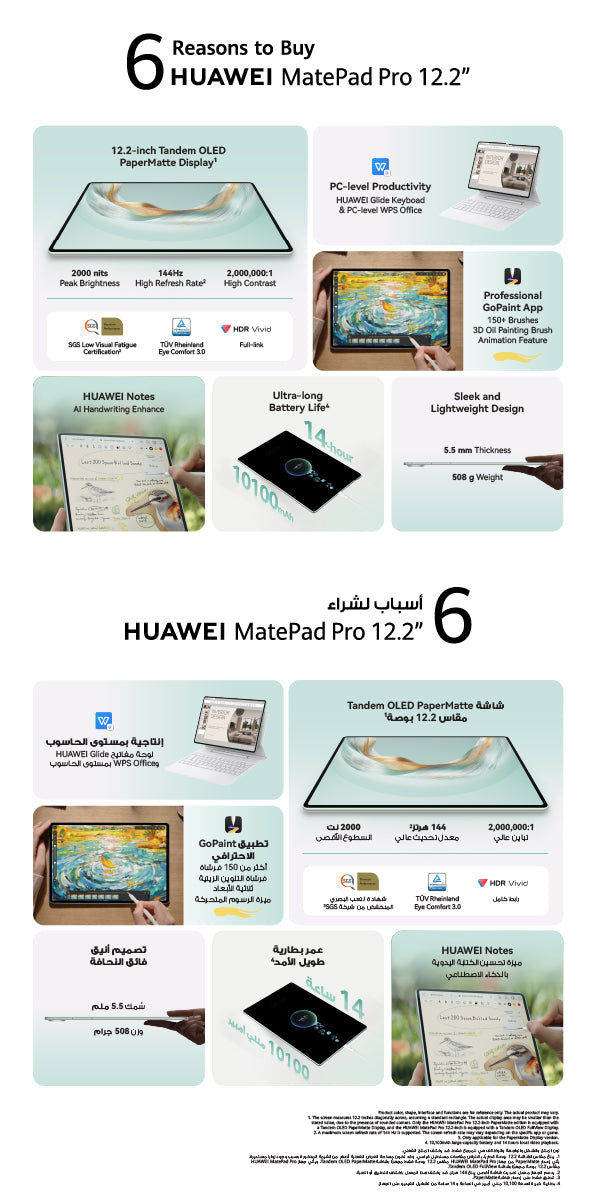 NearLink : Connections to HUAWEI M-Pencil (3rd generation) and Glide Keyboard supported.